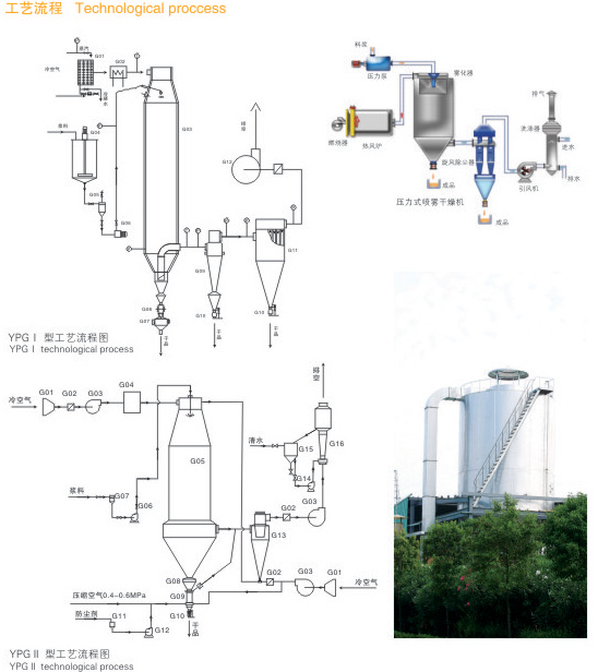 簡(jiǎn)述:壓力式噴霧干燥造粒機是采用壓力式霧化器借助隔膜泵的壓力將溶液或漿狀的物料霧化成